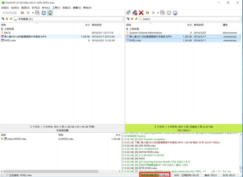 利用腾达AC15的文件分享功能搭建Ftp服务器,连接USB3.0接口硬盘盒,然后客户端利用FTP软件从服务器端下载文件。