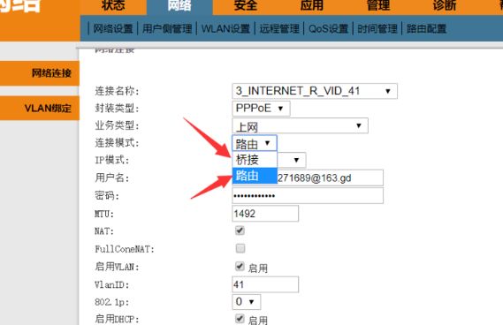 4、我们看到我们的状态中,上网业务已经开启了,连接方式为路由,一般来说上网方式为桥接,这里小编已经设置完成了。