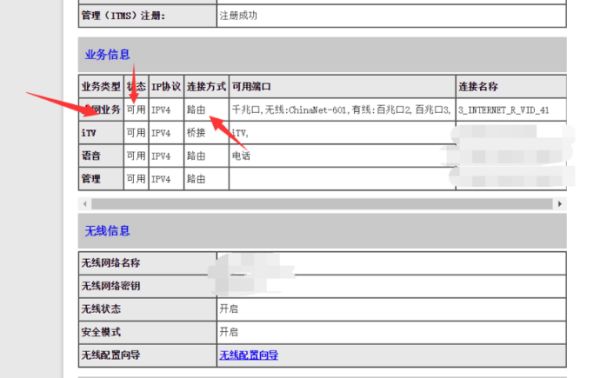 11、设置完成之后,我们点击保存,可以看到我们的上网业务的连接方式已经成为了路由。而且我们连接光猫所创建的无线局域网就可以连接上网了。