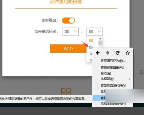 5、在定时重启路由器页面上选择05之后,点击“保存”。