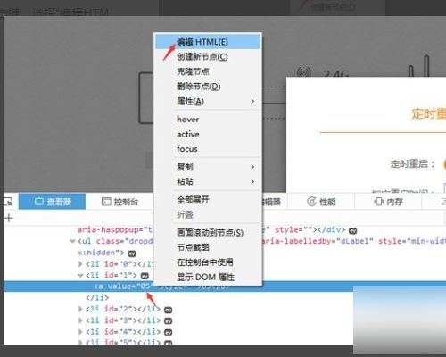 3、在查看器中将鼠标移到"05"上(找不到可刷新网页),点击鼠标右键,选择“编程HTML”。