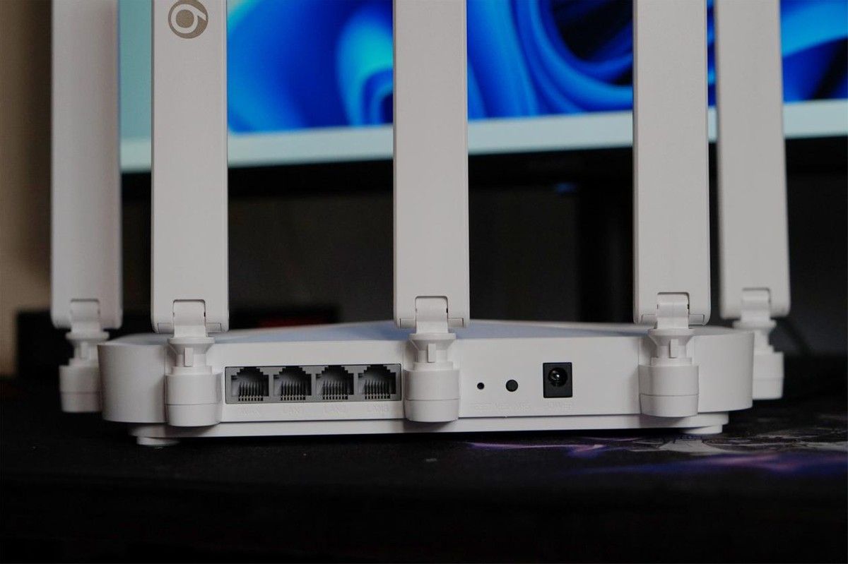 接口设置在路由器背面,各种接口一字排开,插拔非常方便。AX3000为我们准备了1个WAN、3个LAN,家庭使用完全够用。虽然接口下面印着名称,不过并没有用颜色区分,对小白用户不太友好。