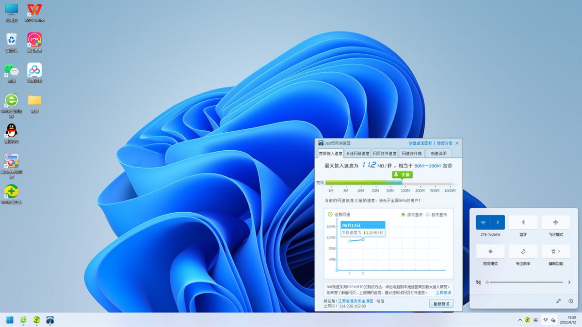 AX3000是一款千兆路由器,可能现在很多家庭还没达到这个带宽,所以即使再过几年也不会落伍。笔者家为电信100M,电脑连接WiFi测试网速11.2M,达到了运营商的标准。