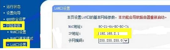 4、然后选择网络参数里的LAN口设置将ip地址改为如图所示,然后选择保存;