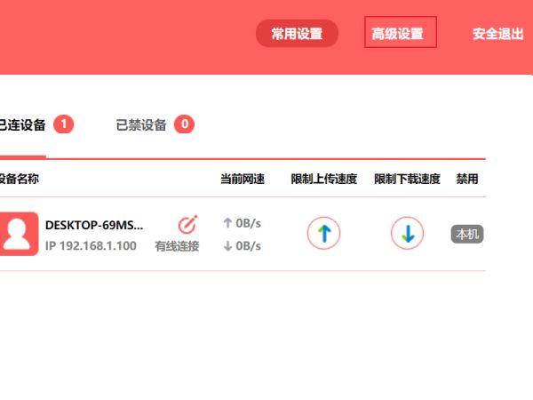3、进入路由器后,点击界面右上角的【高级设置】。