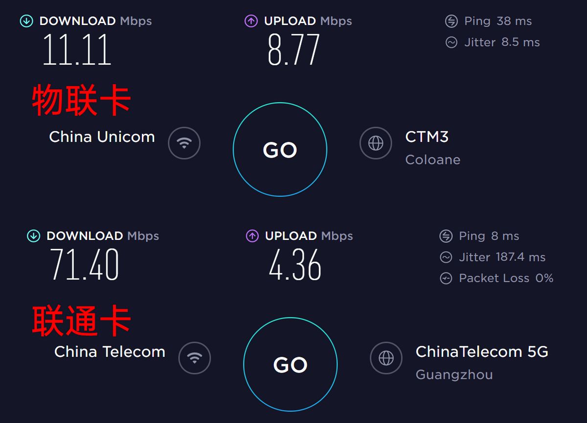 这里测试了一下蒲公英R300A 4G工业路由器的网速。首先是使用物联卡发出的网速,在没有墙壁遮挡的情况下,蒲公英R300A 4G工业路由器的下载网速达到了11Mbps左右。而我自己的联通卡,网速则达到了70Mbps左右,网速更佳,不过物联卡的资费较为低廉,就看你如何取舍了。