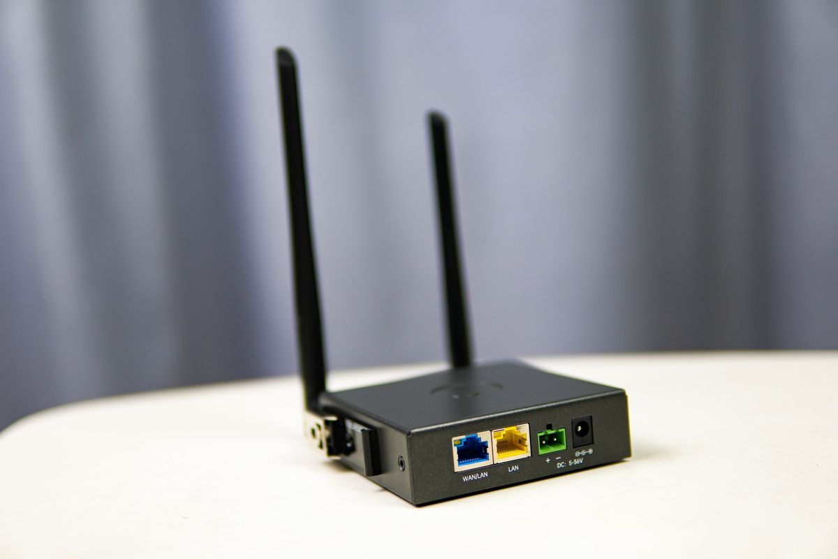 跟普通的路由器差不多,蒲公英R300A 4G工业路由器配备了两根可拆卸可弯折的天线(WiFi+4G),一个WAN/LAN接口和一个LAN接口、两个电源接口。