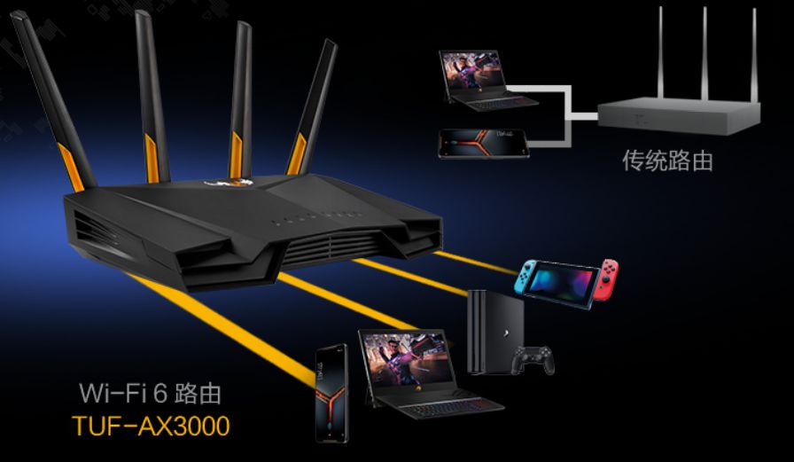 其实在高端路由上还有更多的黑科技技术,例如TUF GAMEING AX3000就采用了OFDMA+MU-MIMO技术,让传输通道更为高效4倍,可以同时为多个客户端高速传输,无需排队等候传输。但是相信一般的销售人员自己都不太懂,所以也就不再赘述了。