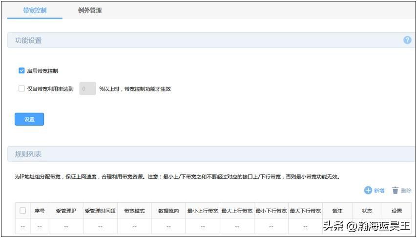 带宽控制功能在“行为管控>>带宽控制”,如下图: