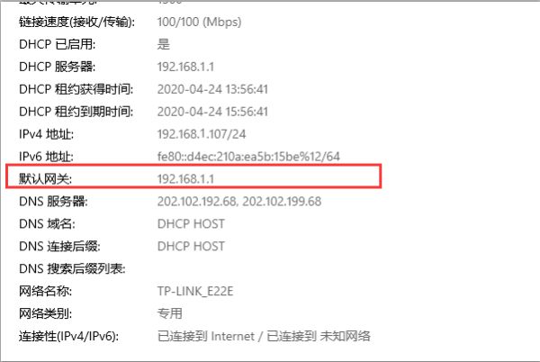 3、页面跳转以后可以看到当前网络的路由器默认网关IP地址并记下该IP。