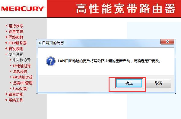 10、此时系统弹出重启路由器的提示点击确定重启该无线路由器。