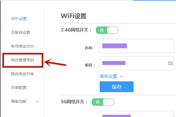 依次选择【路由设置】-【无线设置】,进入无线设置界面后完成wifi密码的修改,最后点击【保存】即可。
