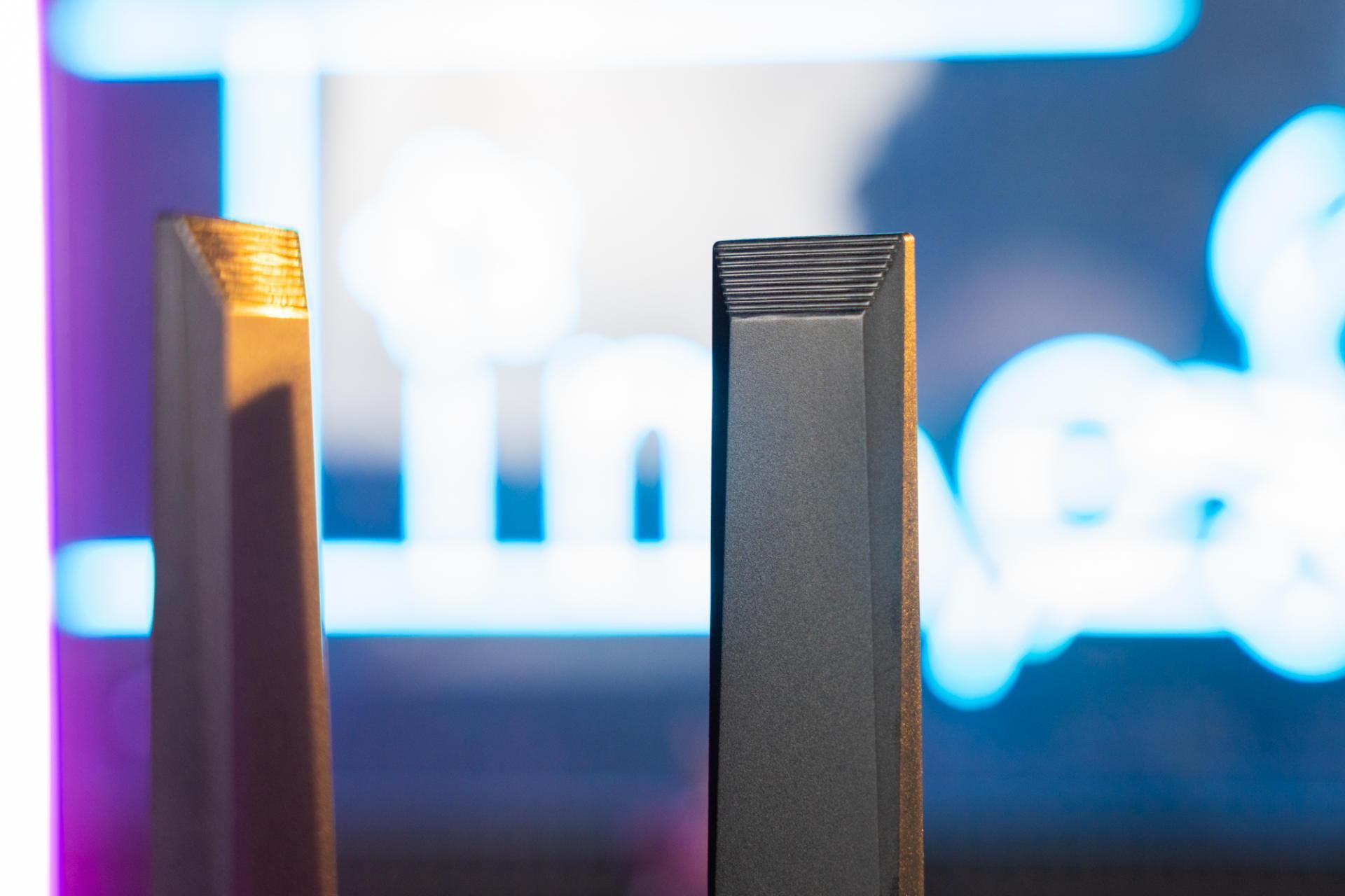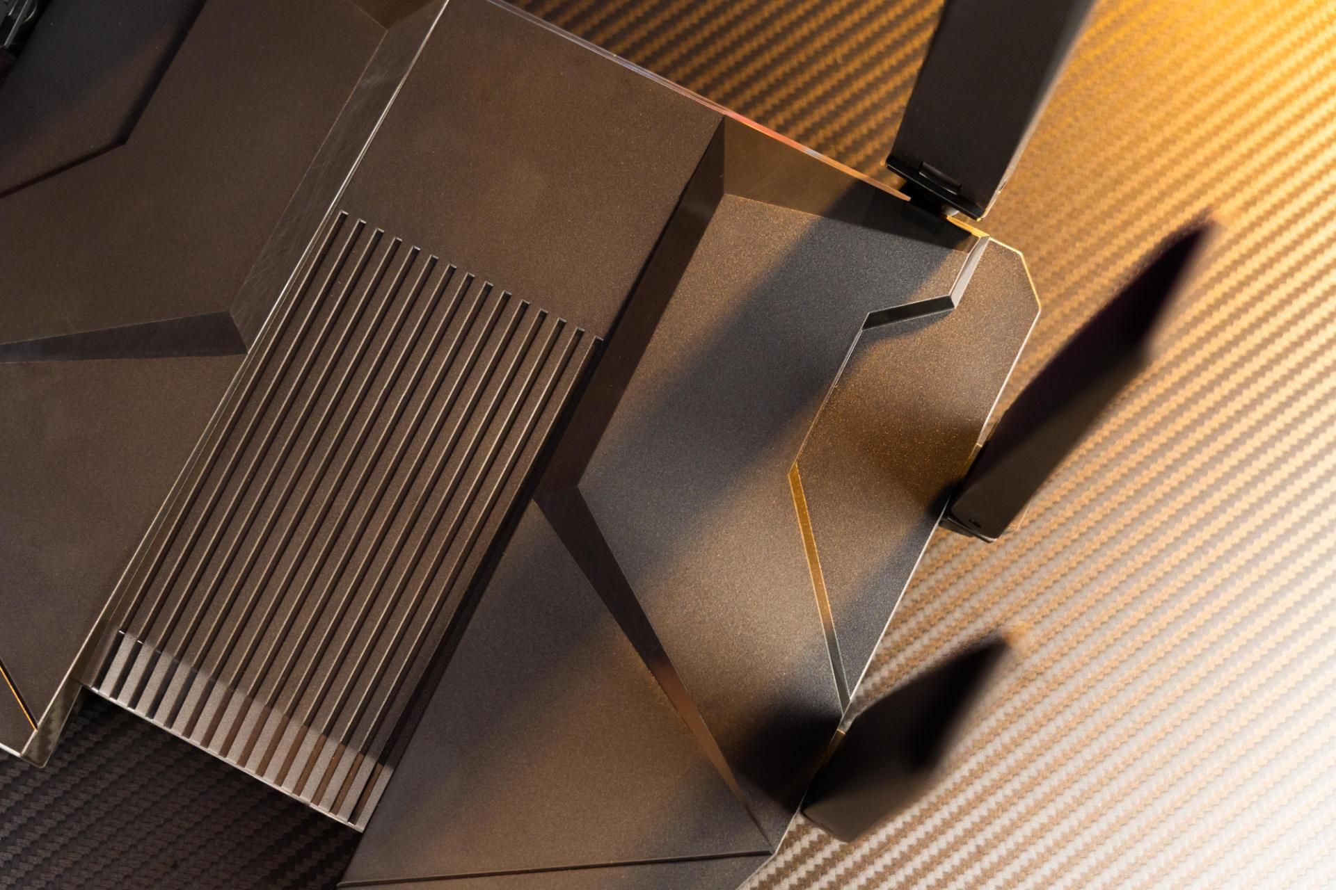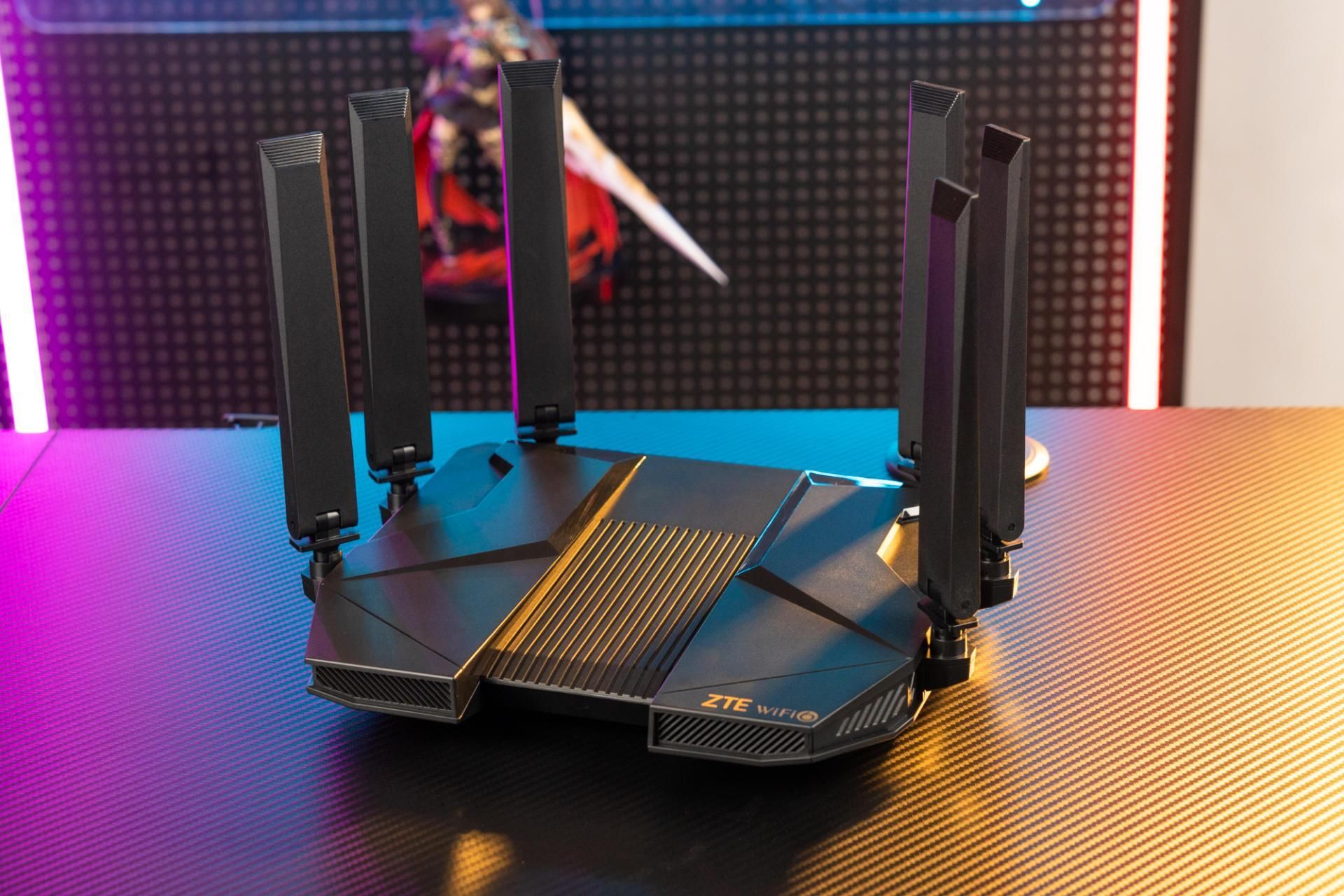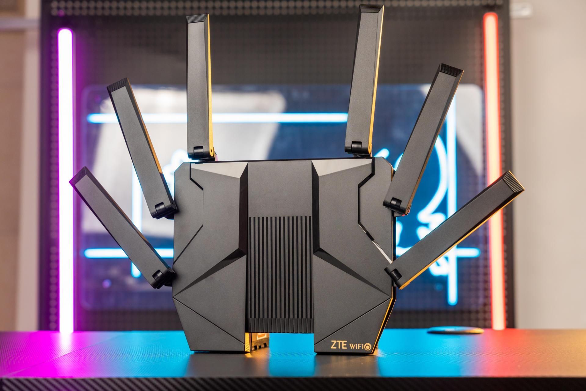 整个路由器给我的外观就非常的硬朗,科技风。一点都没有圆润的百元家用路由器感觉,外观看起来非常像一个飞行的战机,科技感满满,个人感觉在路由器外观设计之中,中兴的这一个设计算得上是中上水平了。