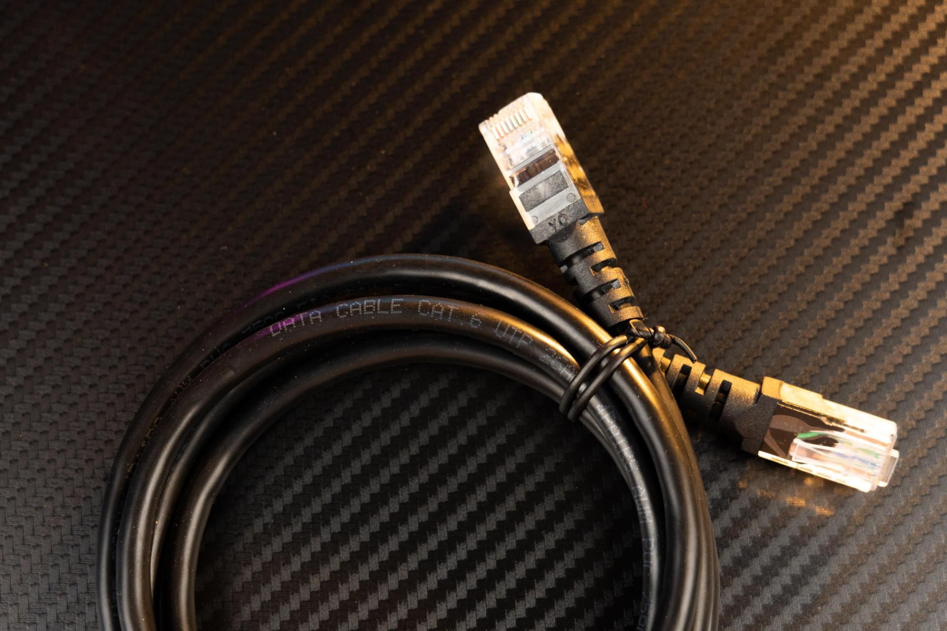 网线这里可以看到是一条6类线。长度的话大概是一米,顺带科普一下6类线,它的理论传输速度是1000Mbps,看不懂这个数字的含义没有关系,你只要知道:就算拉千兆宽带它也是可以胜任的。