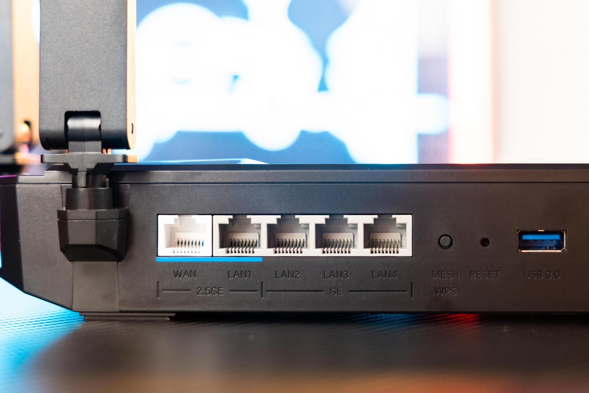 重中之重来了,就是它背面的这两个写着2.5G的网口了。这两个接口就是这一个路由器的核心。