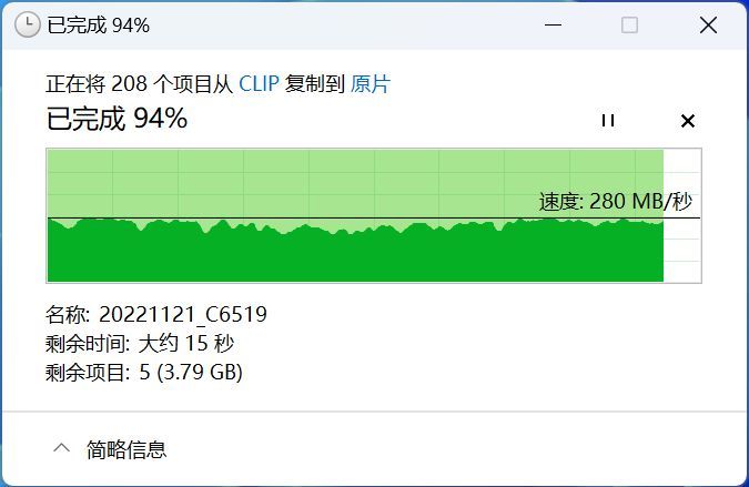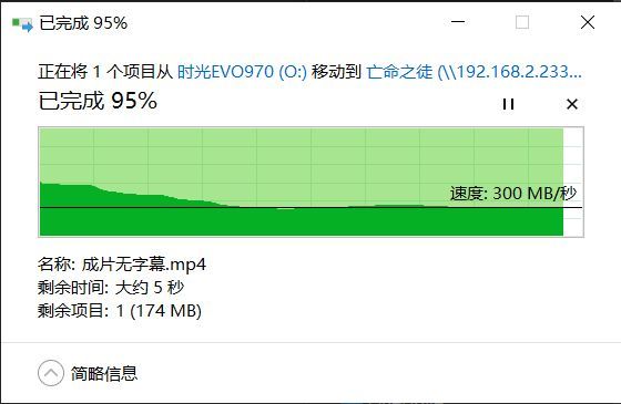 前期工作都准备就绪,直接连接上电脑,可以看得出来,在两台电脑也是新建一个smb共享,传输的速度轻松就跑到了300兆每秒。