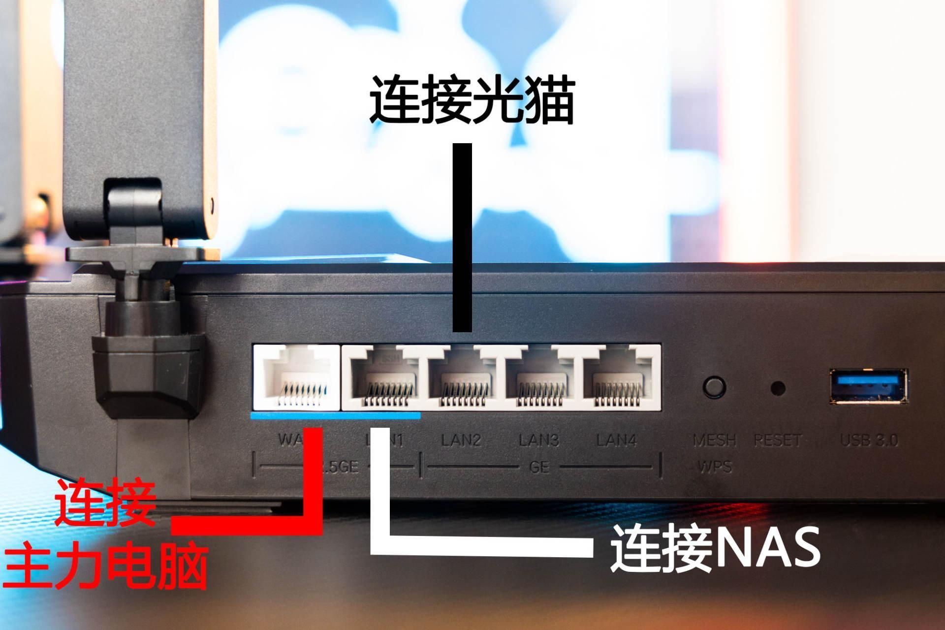 路由器还额外空出了一个2.5G的接口出来,这一个2.5G可以连接2.5G交换机或者连接其他电脑设备,这样的话一些设备使用无线连接的时候,也能快速访问NAS里面的文件啊,终于能够突破千兆的速度了!