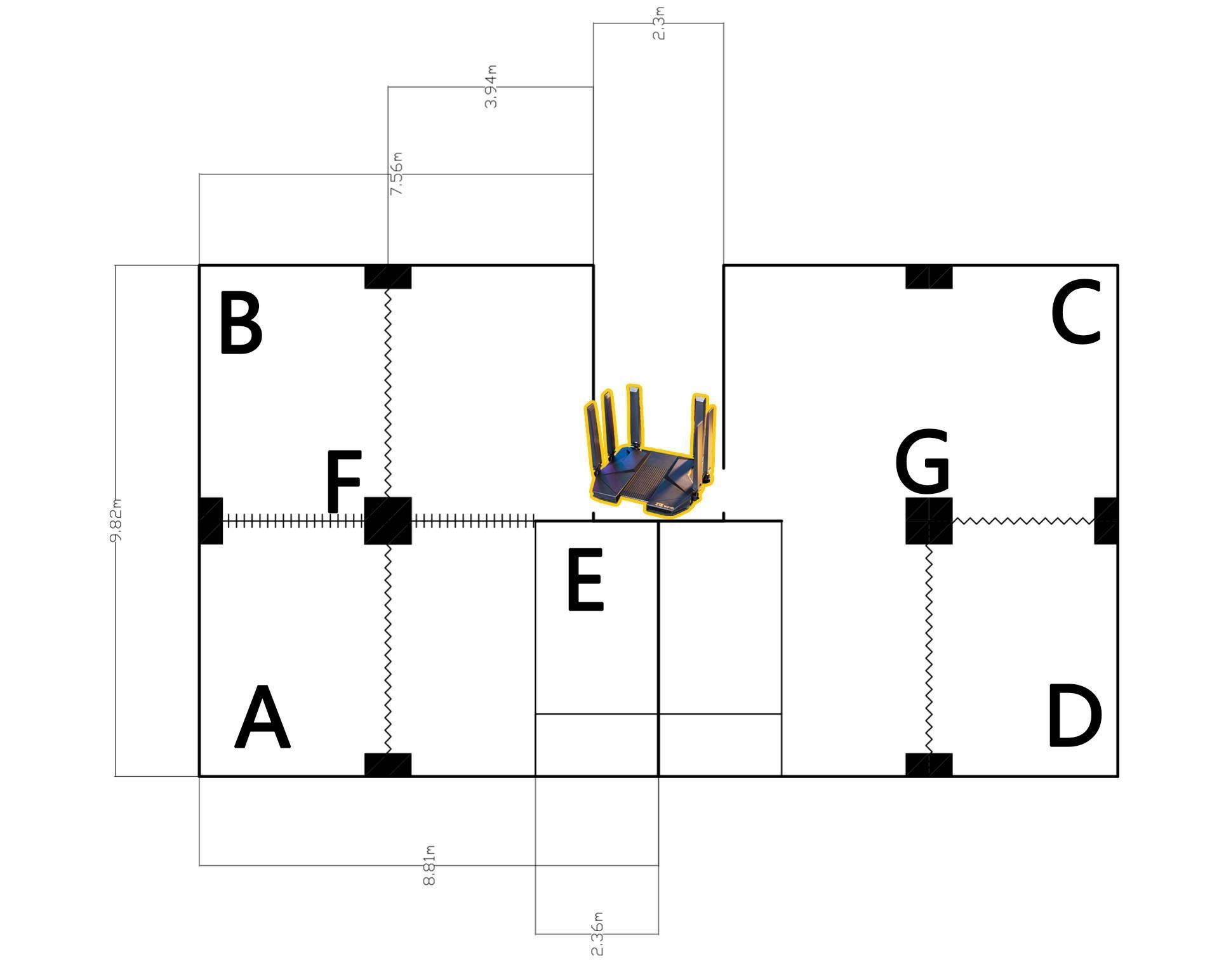 在测试了多个点的速度之后,发现他这一个路由器呈现出来的发射信号是接近一个圆形。所以路由器放在客厅的中间,会比放在墙边要好一点。