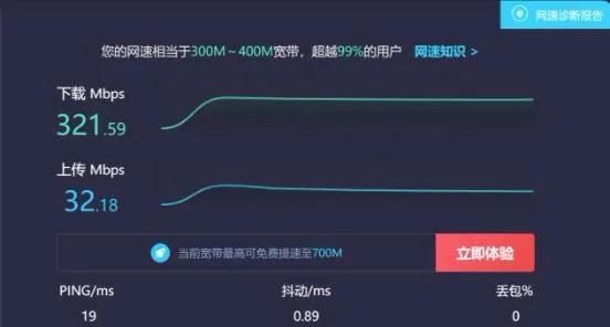 最后我们做一下外网测速,所用的外网宽带为300M的电信宽带,用支持160MHz无线网卡的笔记本进行测试,实测下载速度达到了321Mbps,可以跑满300M的宽带。