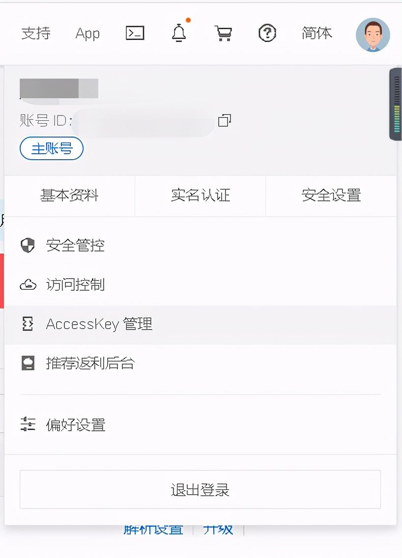 打开脚本前,先去阿里云域名解析控制台获取AccessKey ID和密钥。获取方法:域名解析页面鼠标放到自己的头像上,点击AccessKey管理,然后按照提示获取自己的ID和密钥。最好复制出来保存好,后面会用到。为了方便,Accesskey ID和AccessKey Secret我们分别简称为ak和sk.