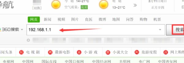 2.在搜索框中输入你路由器背面的地址(一般情况下是:192.168.1.1 ),然后点击“搜索“。