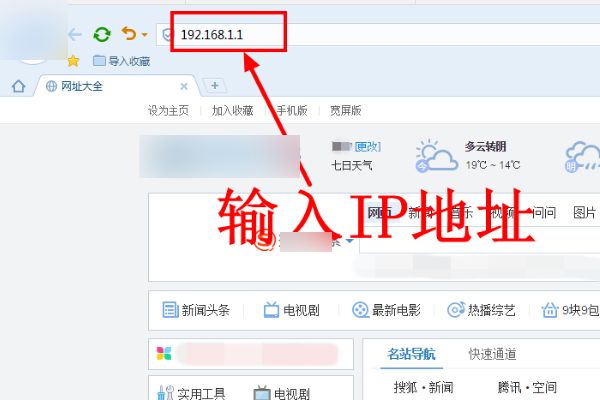 1、打开浏览器,在浏览器中的地址栏中输入第一步中记录的路由器IP地址。