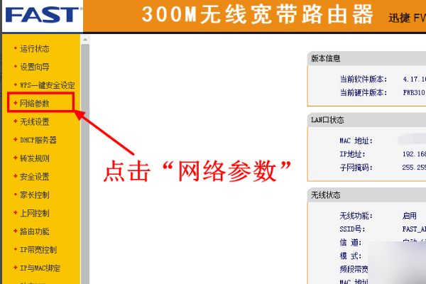 3、登录成功后就进入路由器的设置页面了,首先点击页面左侧的“网络参数”选项。