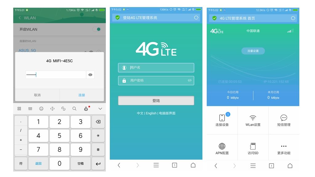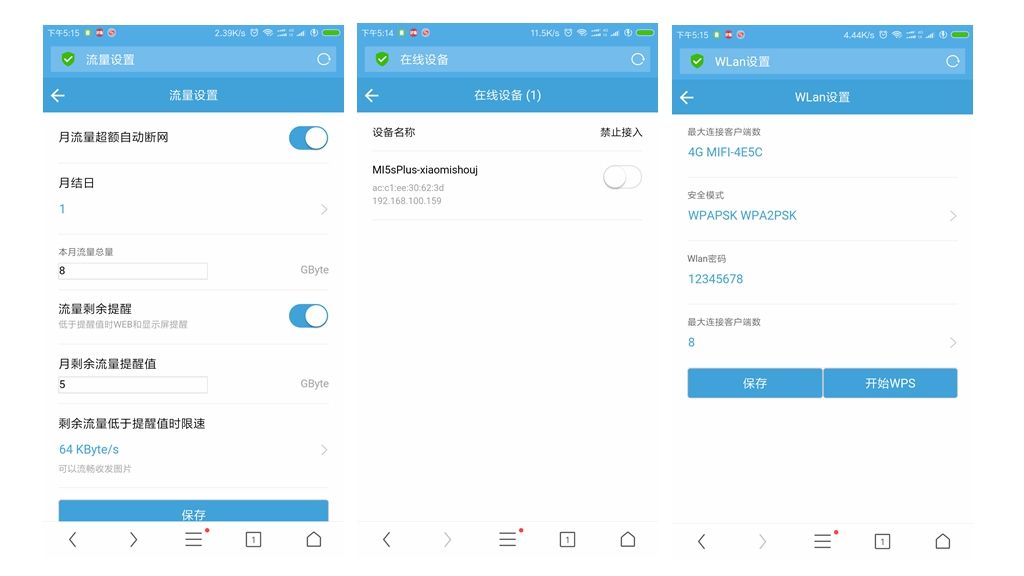 连接路由后,输入账号密码就能对路由器进行管理了。路由器管理界面比较清新简洁,但是功能却很强大!在这里上方可以查看SIM信号情况,并且自行设置流量限额,这样就不用担心流量用超了。另外还可以对连接设备、Wlan设置、APN、短信等进行设置更改,很强大。