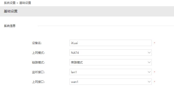 第二步:主路由在系统设置--基础设置里面选择主干模式,旁路由在系统设置--基础设置选择旁路模式。