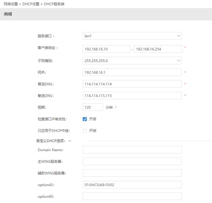 如果爱快路由器做旁路并且和AP之间经过了三层设备,那么需要在三层交换机上配置option43指向旁路由网关。