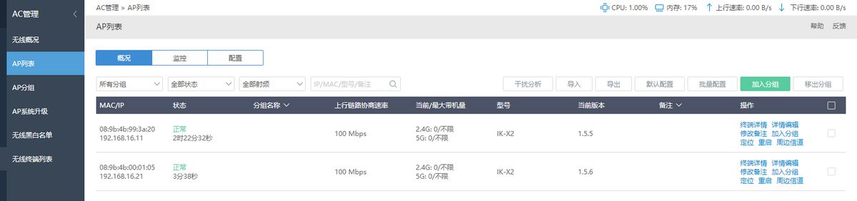 然后在旁路由上开启AC智能控制,就可以识别到ap了。
