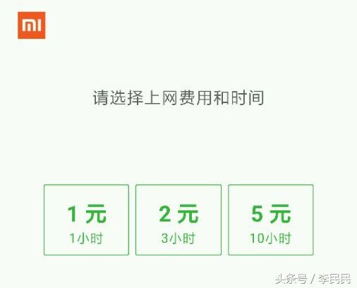 在链接上小米红包wifi后出现的支付界面,支付对应金额后可获得相应上网时长。