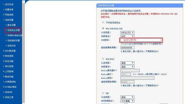 6、点击【无线网设置】---【无线安全设置】,设置你的wifi密码,保存;如图所示:
