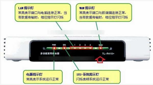 宽带接入要正常,外部插入路由器的网线进线接口必须常亮,也就是WAN口必须常亮,有数据传输则为常亮闪烁。