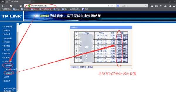 2、找到【IP与MAC绑定】,将所有设置的IP地址绑定;