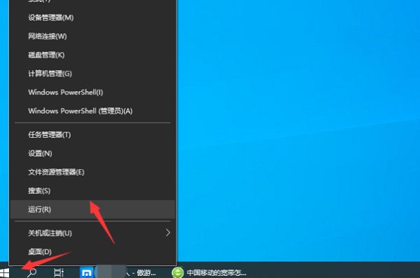 1、在电脑连接光猫且可以上网的前提下,点击电脑右下角的开始,选择运行。