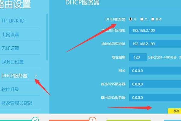 8、再点击DHCP服务器,勾选开启DHCP功能以后点击保存。