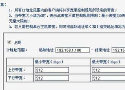 8、再在下面的规则中填写要控制的IP和带宽大小,同时也设置自己的电脑“保证最小带宽”,并且全部选择“启用”,再单击“保存”按钮保存全部的设置即可。