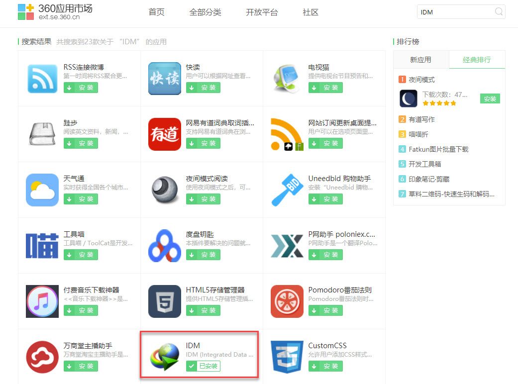 360浏览器扩展程序管理-以添加IDM程序为例