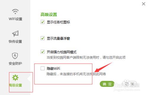 5、在高级设置里面选择隐藏WiFi,这样已经连接过的手机下次不用收索也能连接了。