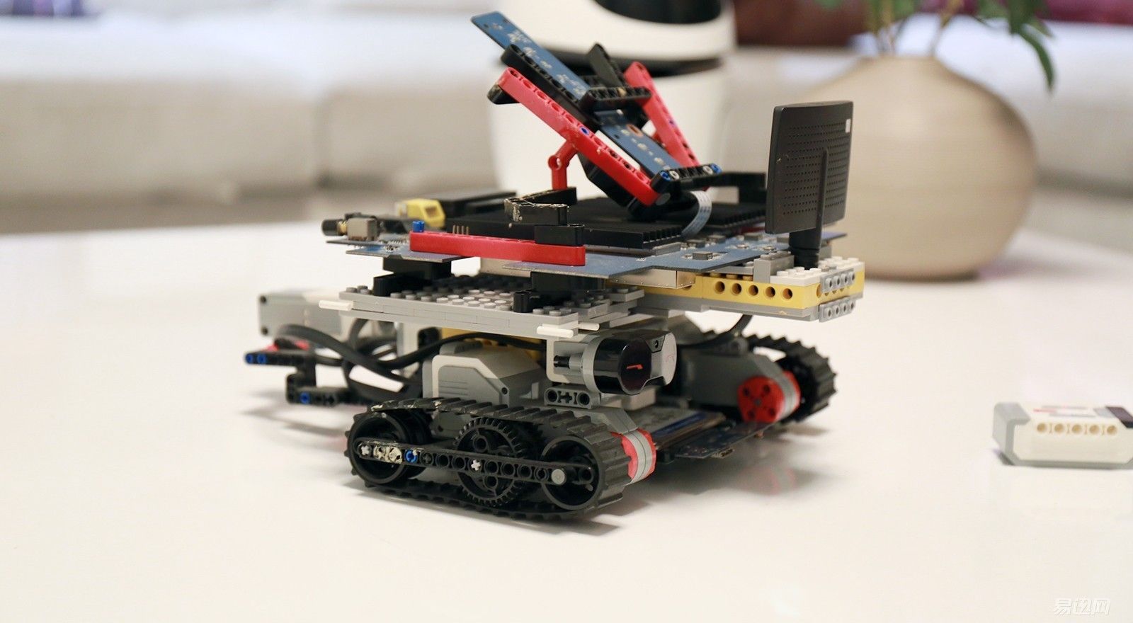 最初的设定是“可编程自动机器人路由”,这台路由使用了乐高EV3机器人组件来改造,原计划是放家里当个移动的中继器,让它检测到手机的信号,跟着手机跑,你走到哪个房间路由器跟着你跑到哪个房间。