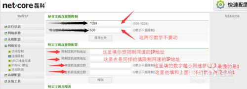 磊科路由器nw738设置限速方法:绑定ip和mac地址,设置限速。