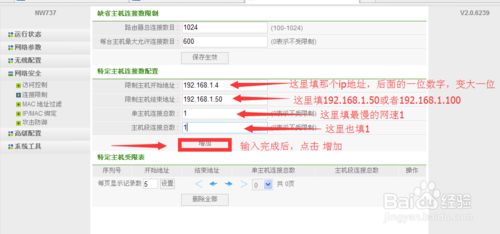 限制主机开始地址;你可以填你想限制网速的地址(比如我的是192.168.1.26)哪里就填192.168.1.26