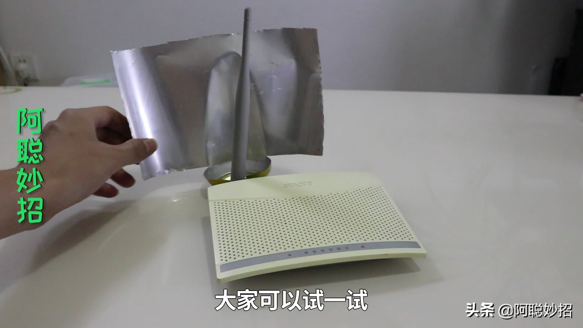最后我们将它放在路由器天线的后面,可以有效的增强信号,大家可以试试。