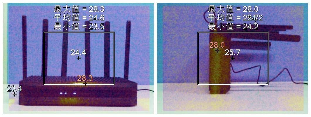 通过红外成像仪显示工作时的最高温度为28~30度左右,比环境温度搞3~6度左右,由此看来散热还算不错。