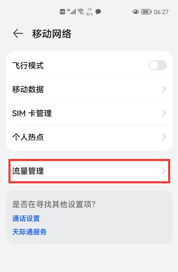 再点击“流量管理”选项,进入到手机流量管理界面。