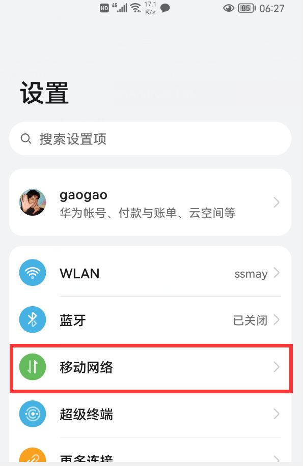还好,华为手机提供了一个非常贴心的功能——智能省流量,每月可以为我们节省很多手机流量。打开手机的设置。