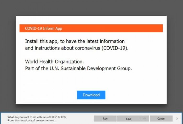 根据安全公司Bitdefender研究人员本周三发布的博文,发现了通过DNS劫持将用户重定向到新冠病毒(COVID-19)信息APP的下载页面。用户访问页面之后并不会下载任何APP文件,会直接被恶意程序感染,并会获取诸如加密钱包凭证和其他私人敏感信息。
