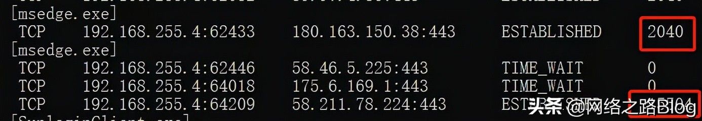 OSI参考模型的第五层,管理和协调不同主机上各种进程之间的通话,负责建立、维护、终止。在Windows上面其实很好体现,通过CMD输入netstat -anob,就可以看到主机上面各种进程的会话信息,有建立的,有超时的,比如下面使用同一个浏览器(edge),访问不同的网页服务,在计算机里面有不同的进程,当用户访问优酷完毕后,关掉了这个浏览器的页面,那么对应的整个进程的状态会变成结束,会话层就会关掉这个进程。