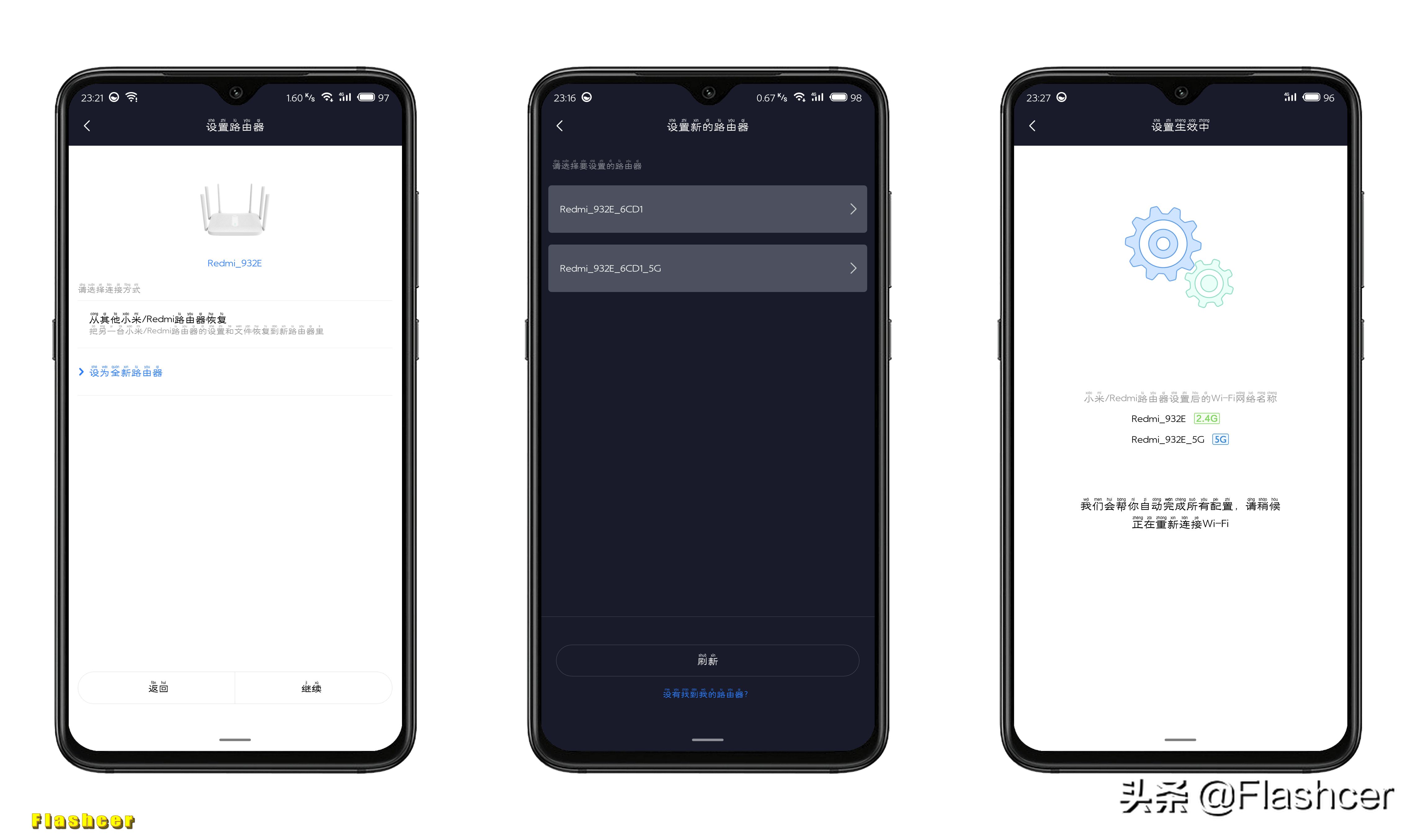 在首次设置小米智能Wi-Fi设备入网时,配合小米路由器App,按照引导操作界面提示,可以手动输入密码或者通过断电就路由器一键导入恢复,入网后者更便捷。整个设置过程中,会出现一个5G名称的信号,配置过程中只需要等待自动连接成功即可。